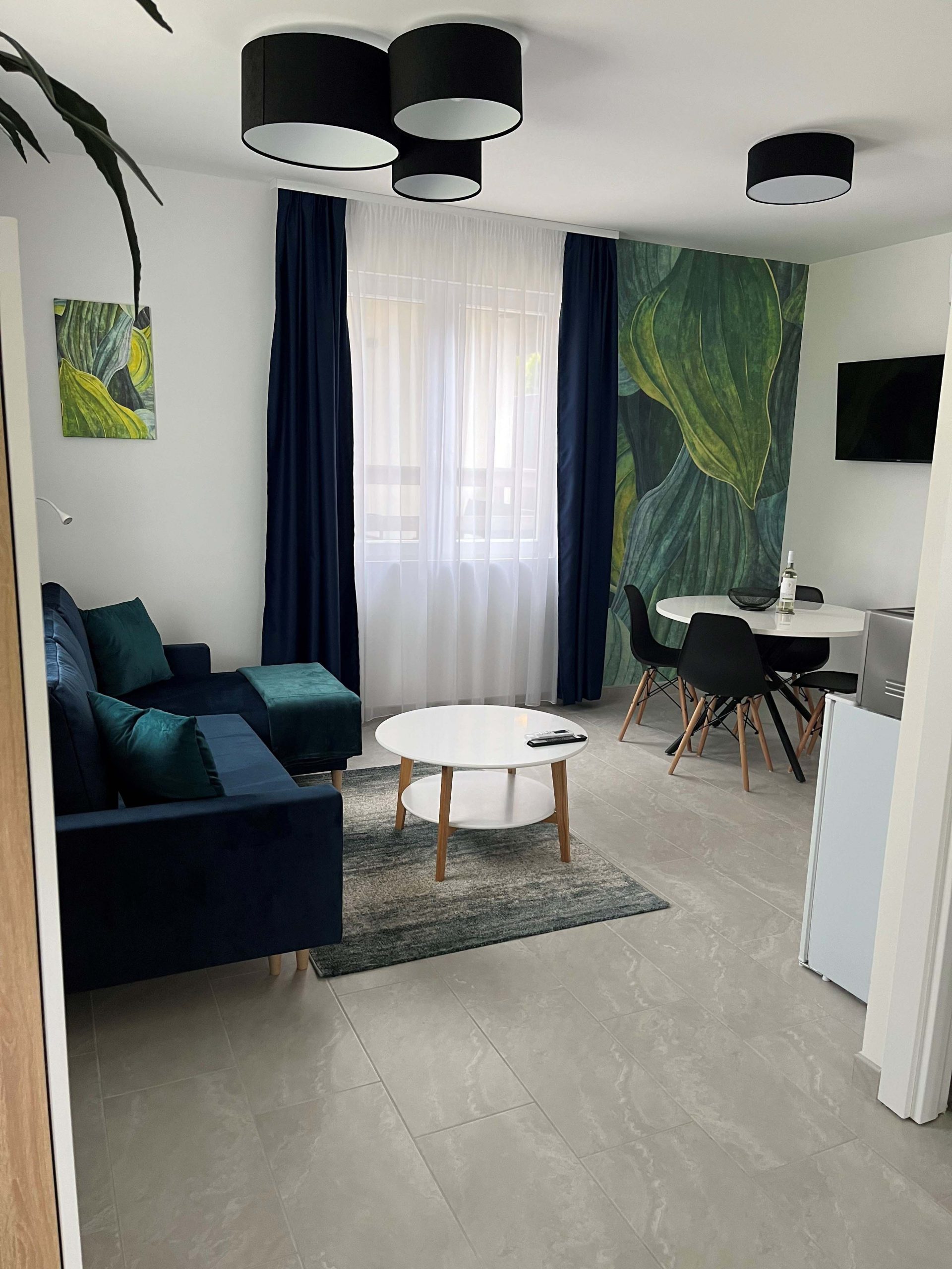 Apartman területe 40m2, 1 háló, kényelmes nappali, konyha, fürdőszoba, privát terasszal, ingyenes parkolással.